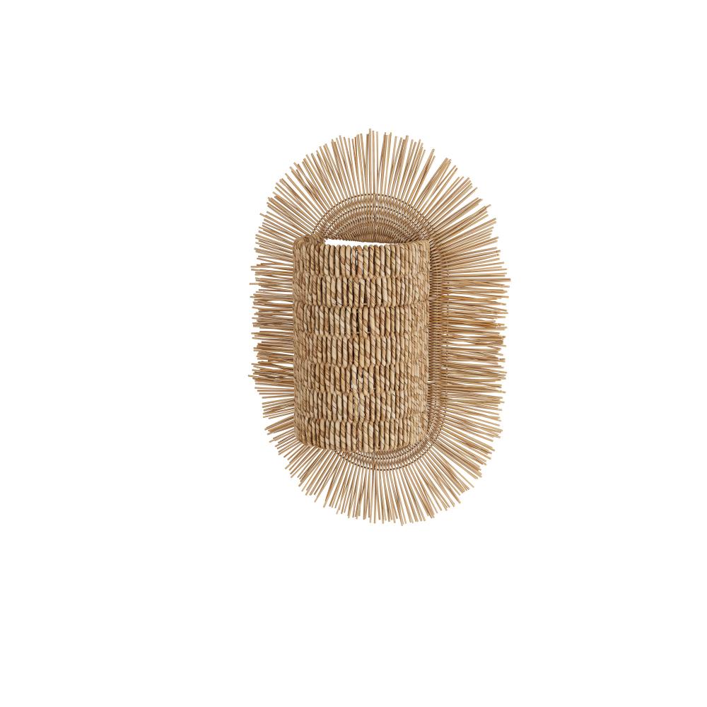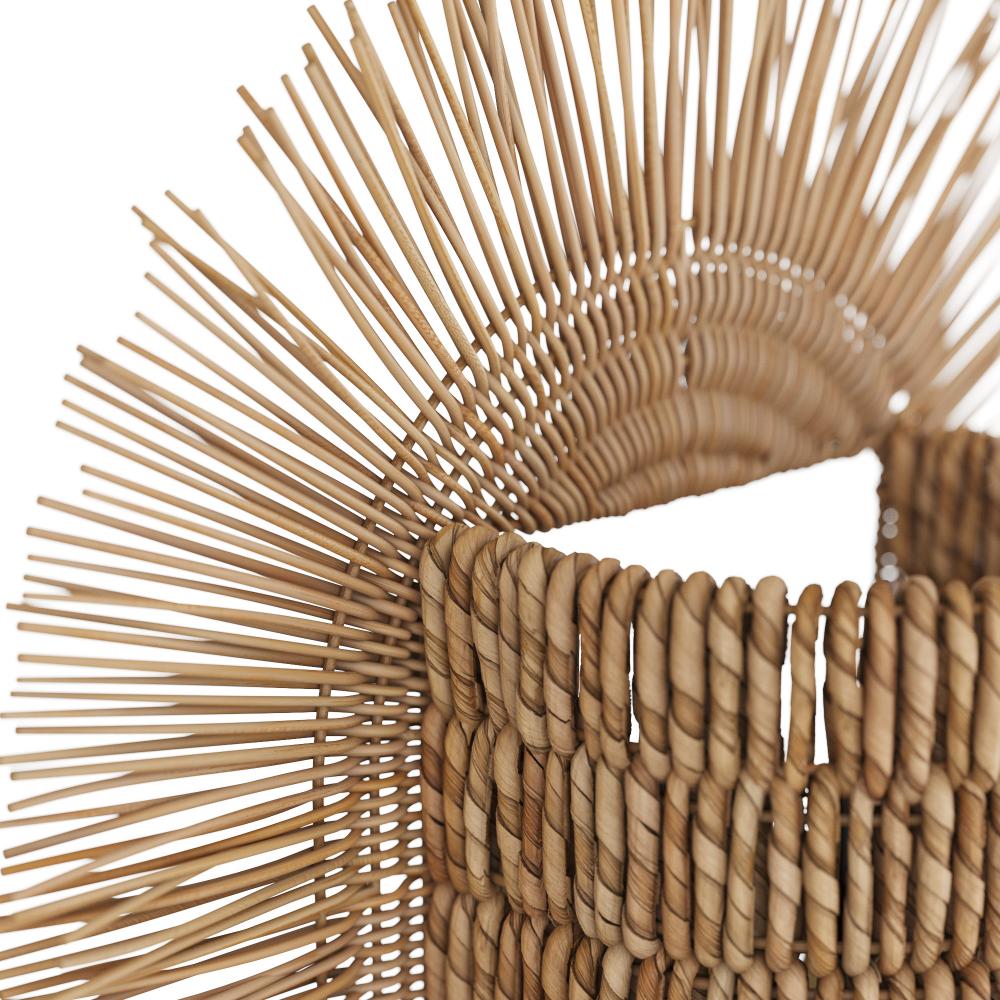A sunburst silhouette of abaca creates a bold statement of sustainable materials. Fringed with a flourish, this fixture is topped with a rattan dome woven of coco rib and natural abaca in a striped motif. Organically alluring, the unique weave of the Alexia bounces beautiful light across any space. Finish will vary.