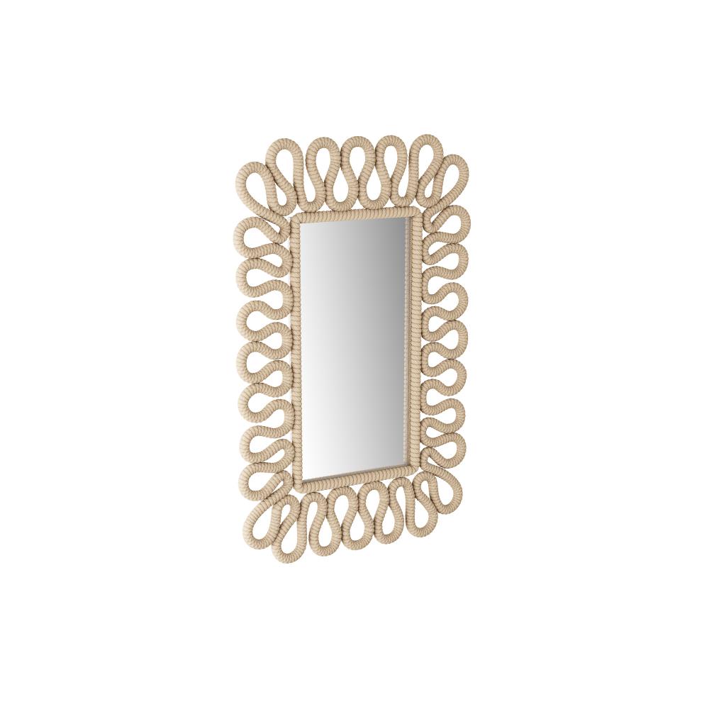 As a lyrical counterpoint, the ivory cotton rope lines of the Caracol are like a sound wave; a fluid line wrapping around a rectangle; enough graphic impact to become artwork in the room or a playful frame to one’s reflection.