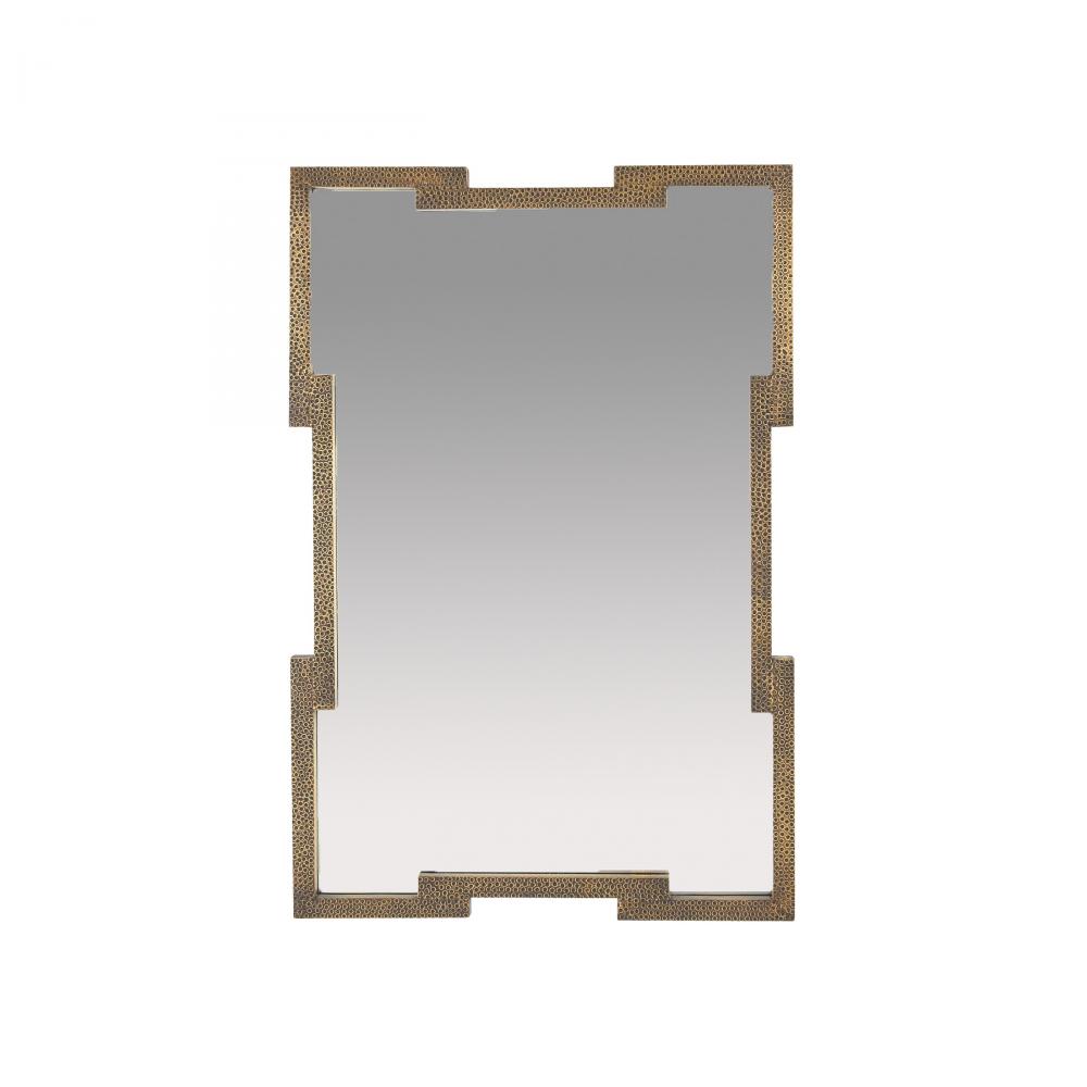 The geometric appeal of a Greek key motif informs the graphic frame of the Creedence. Clad in antique brass with hammered details, its puzzle-like silhouette draws attention, wherever it is hung. Finished with a cleat in back for secure display. Finish will vary.