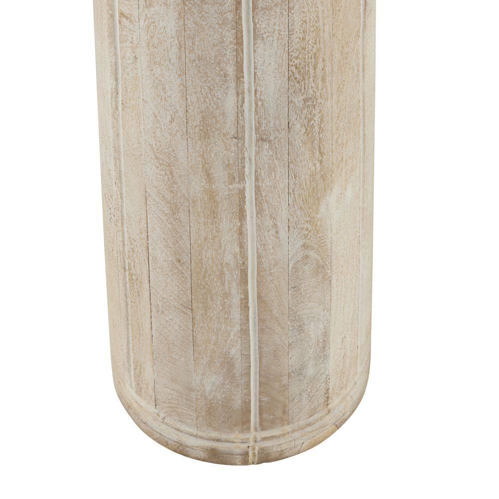 The etched paths of a busy cityscape inform our conical floor lamp. Crafted of mango wood whitewashed to bring out the intersection of lines in the tapered base, it is punctuated with an oversized linen drum shade in off-white and a matching mango wood finial. Clear plastic cord. Finish will vary.