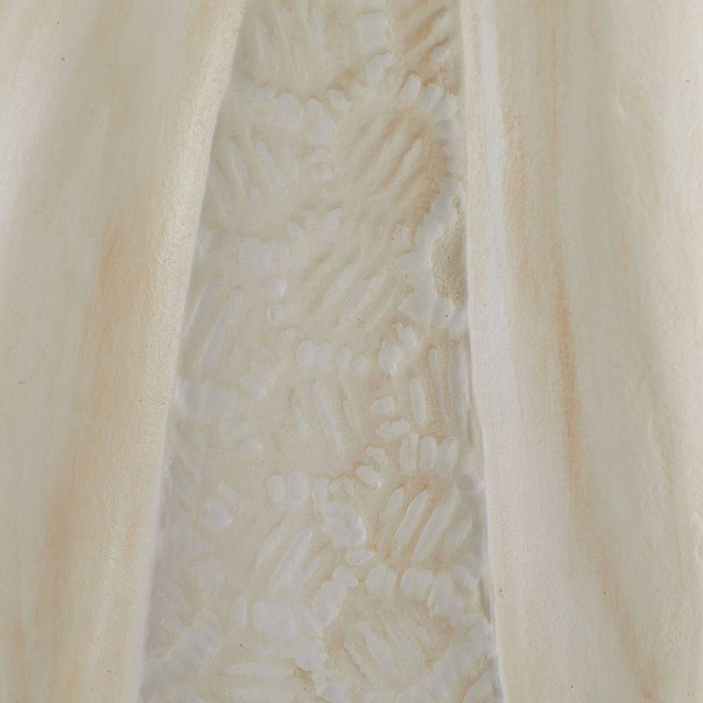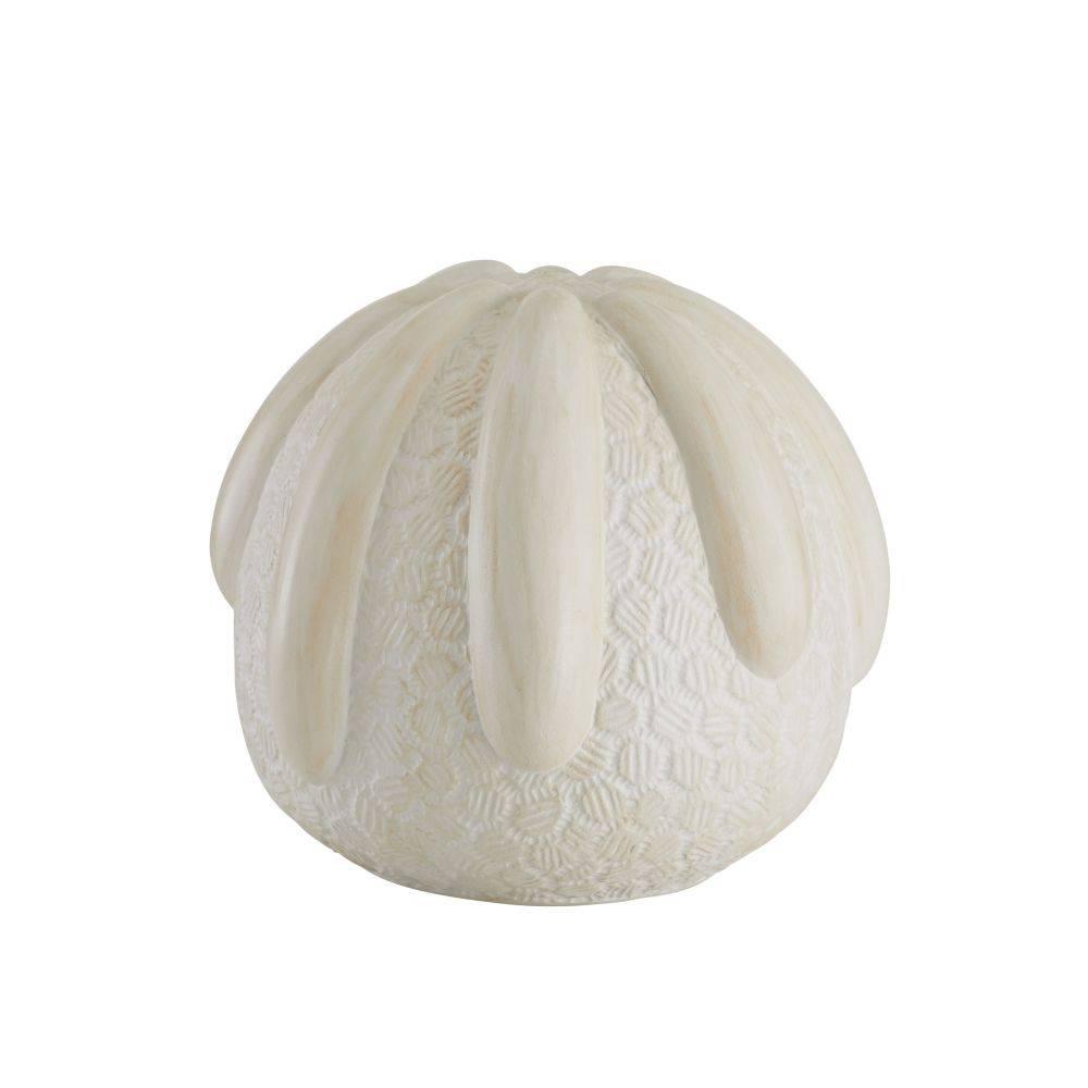 The rounded form of a sea urchin inspired our pair of terracotta sculptures. Each layered and textured style offers a pleasing mix of smooth and intricately carved textures. Glazed with a whitewash finish, they deliver a monumental presence wherever they are placed. Finish will vary.