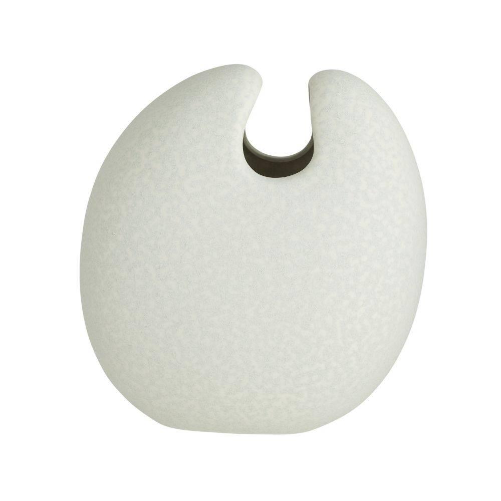 The playful pinching and pulling of clay during the sculpting process results in Genovia's Zen-like form. Our white mint reactive glaze finishes the resulting contemplative porcelain shape. Finish will vary.