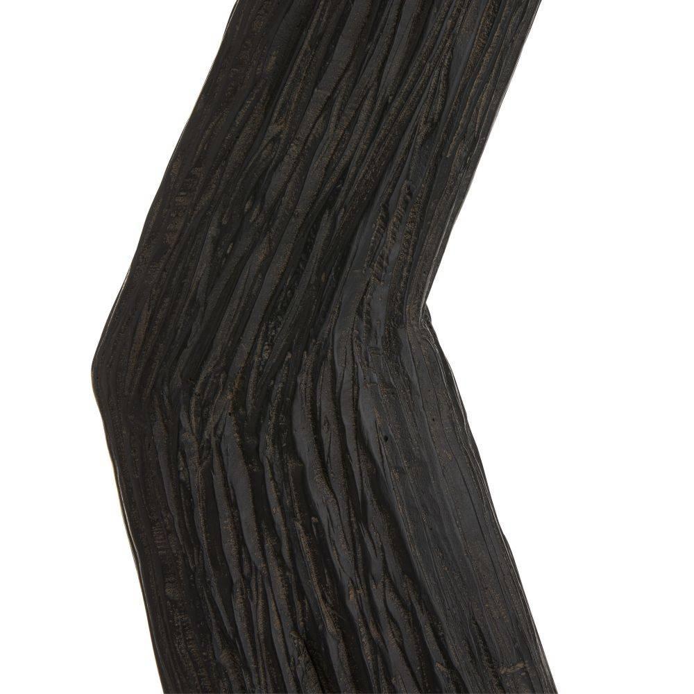 A dynamic accent piece, the Graceland's angular silhouette recalls a lightning bolt. The zig-zag form of ebony resin is finished in a faux bois-inspired texture, accented by a bronze-plated steel base and matching hardware. Topped with a rectangular off-white linen shade lined in white cotton.