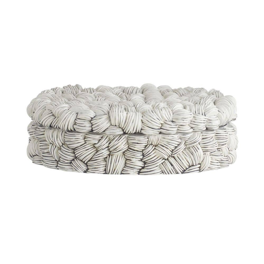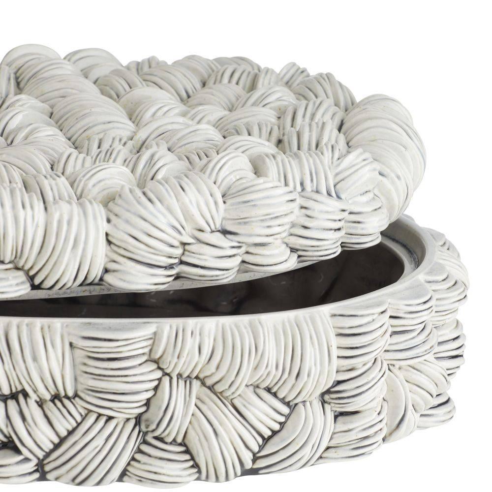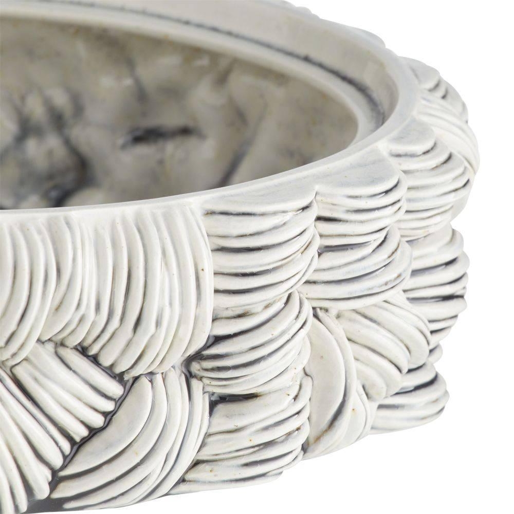 Like sugar icing piped on an elaborate cake, the finish of our sculptural Hampton delivers an eccentric take on the layering trend. Sculptural in shape, this porcelain style is finely crafted with hand-applied ice-reactive glaze that accents every twist and groove. Finish will vary.