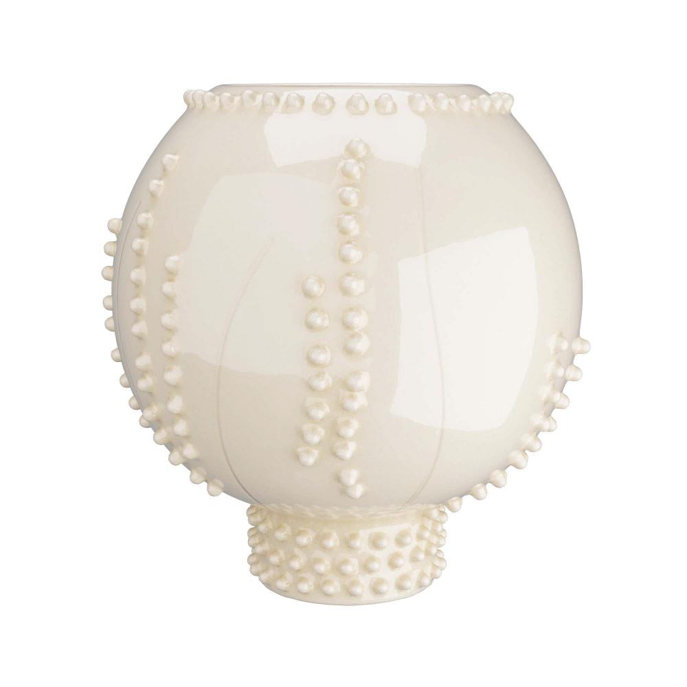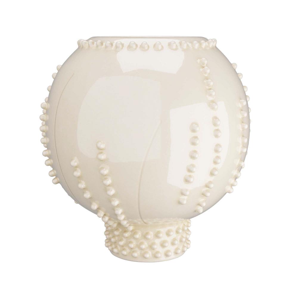 A CERAMIC VASE IN AN IVORY FINISH, CASCADING IN DOTTED TENDRILS FOR A UNIQUE DESIGN. PAIR WITH ITS SMALLER VERSION FOR AN AWE-INSPIRING LOOK. FINISH WILL VARY.