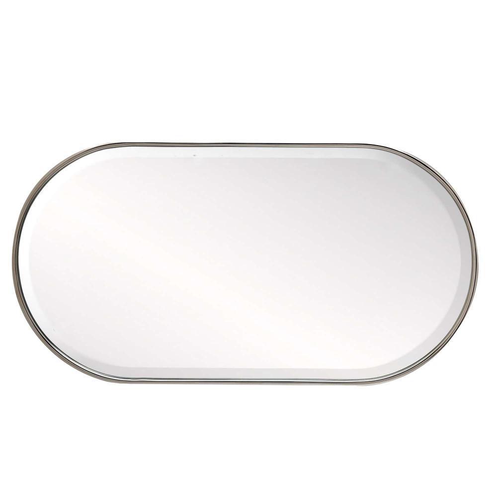 RENDERED IN A CLASSIC CAPSULE SHAPE, THE VAQUERO MIRROR IS ENDOWED WITH A VINTAGE SENSIBILITY. CRAFTED IN A POLISHED NICKEL FINISH WITH A BEVELED MIRROR, THE CHIC ACCENT PIECE IS STRIKING ALONE OR AS A PAIR OVER A VANITY. THE MIRROR CAN BE HUNG VERTICALLY OR HORIZONTALLY AND IS FITTED WITH A SECURITY CLEAT.
