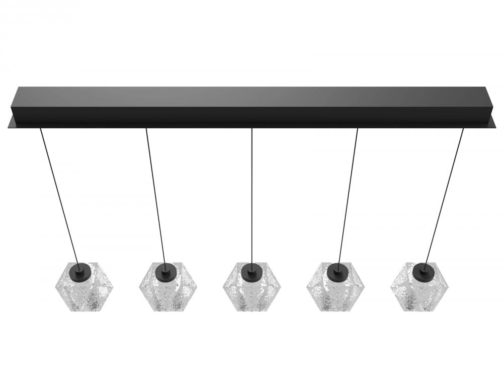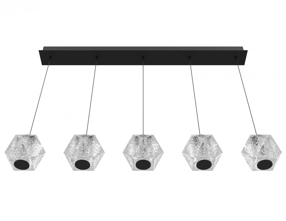 Beluga 5-Light Linear Multi Pendant in Black with Acrylic Faceted Spheres