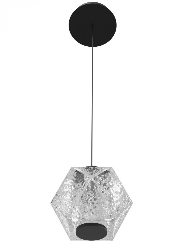 Beluga 6" Geometric Pendant in Black with Textured Glass