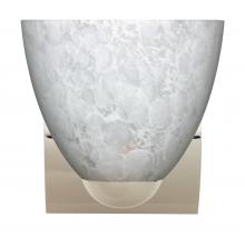 Sasha II has a simple bell shape that complements both transitional and contemporary design themes. Magma décor is a fiery red to set your heart throbbing, with swirls and veins of black, finished to a high gloss. This appealing sconce offers exceptional accent lighting. Satin Nickel metal finish.