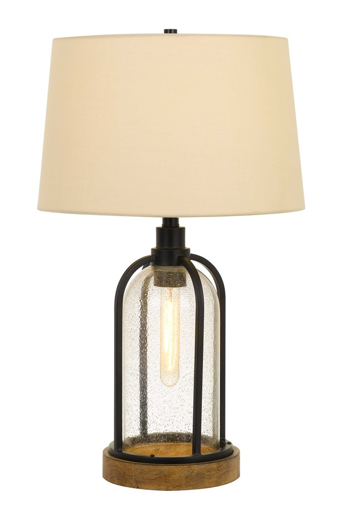 100W Ciney Glass/Metal/Pine Wood Table Lamp With 25W Night Light (Edison Bulb included)