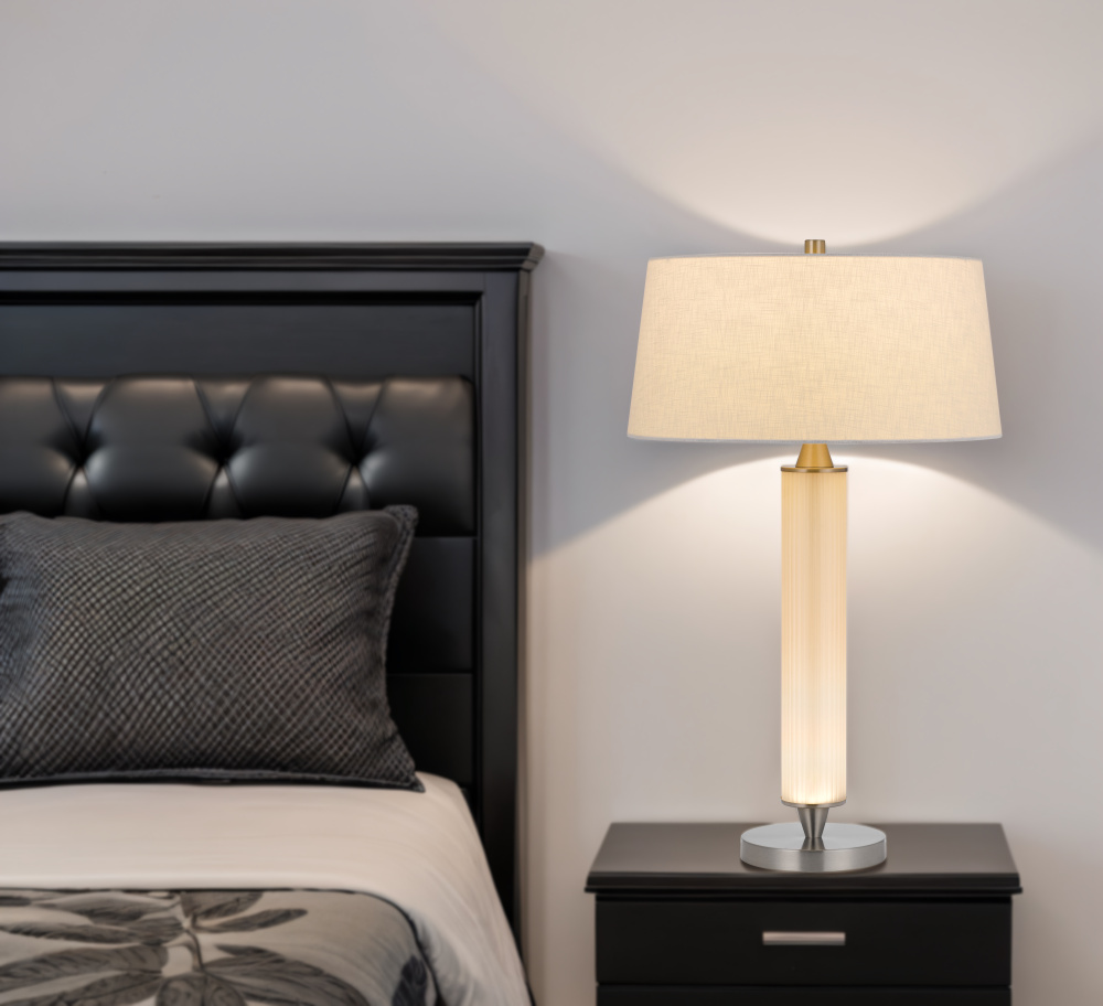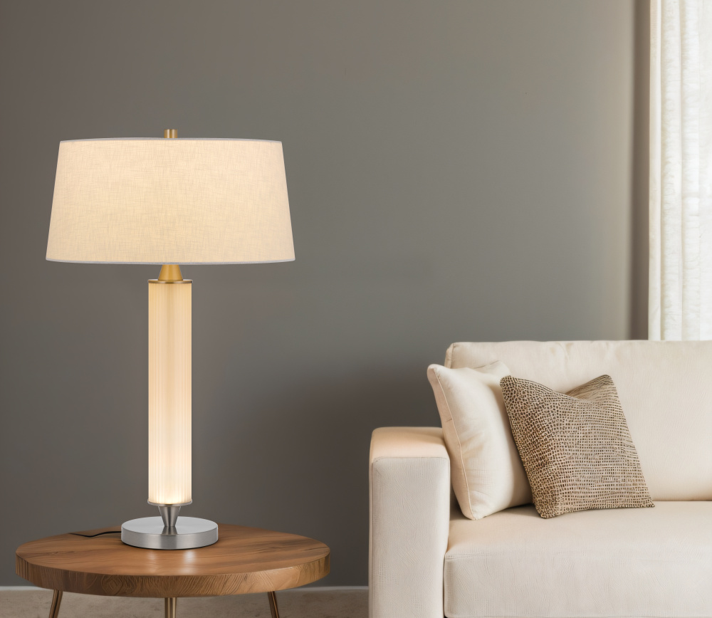 100W Pavia glass table lamp with 2W LED night light and hardback fabric shade