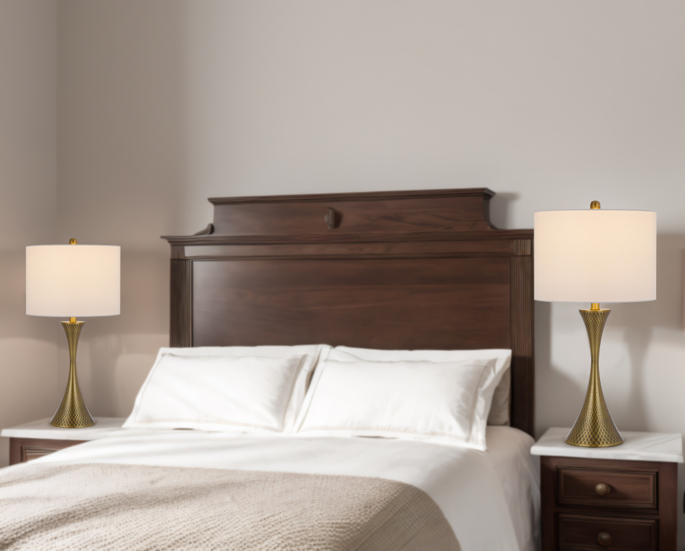 150W 3 way Imola metal table lamp with hardback fabric shade