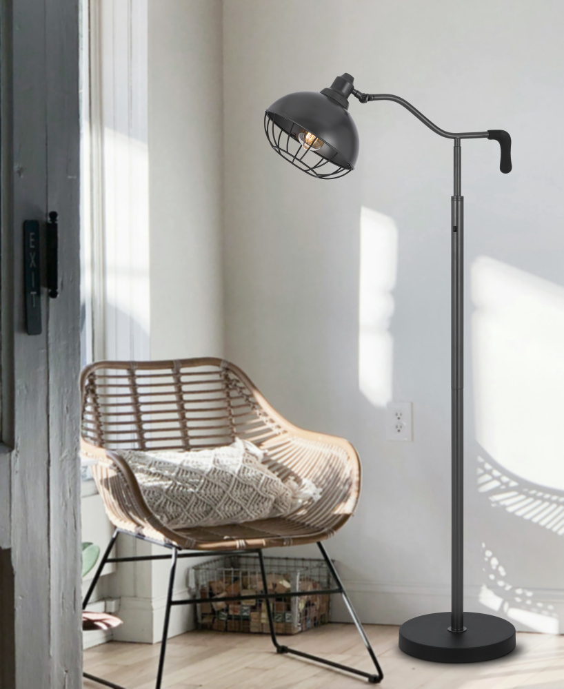 60W Taloga metal floor lamp with adjustable caged shade. (Bulb not included)