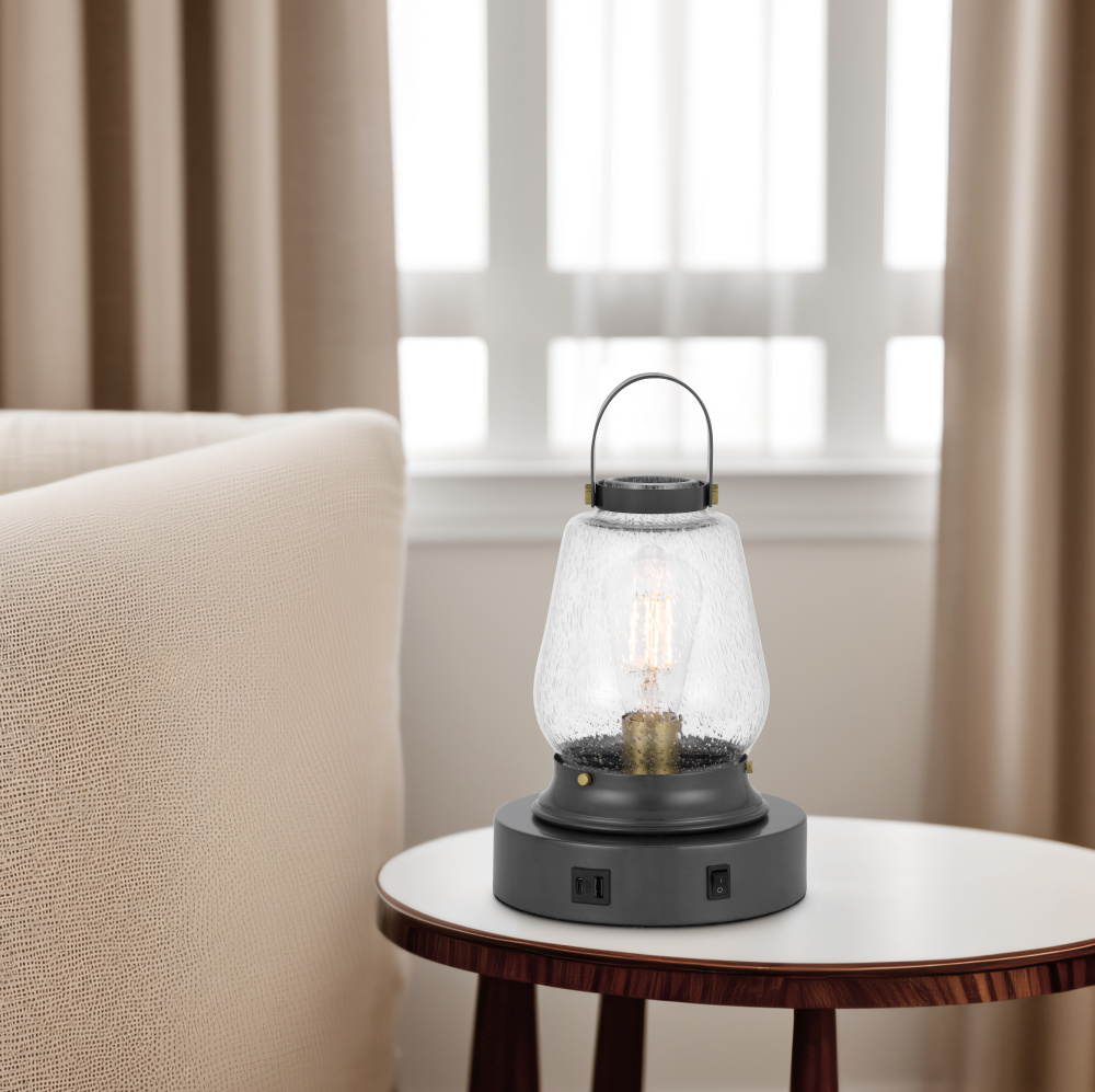 60W Terni accent lamp with bubbled glass & rocker switch. Equipped with 1 USB