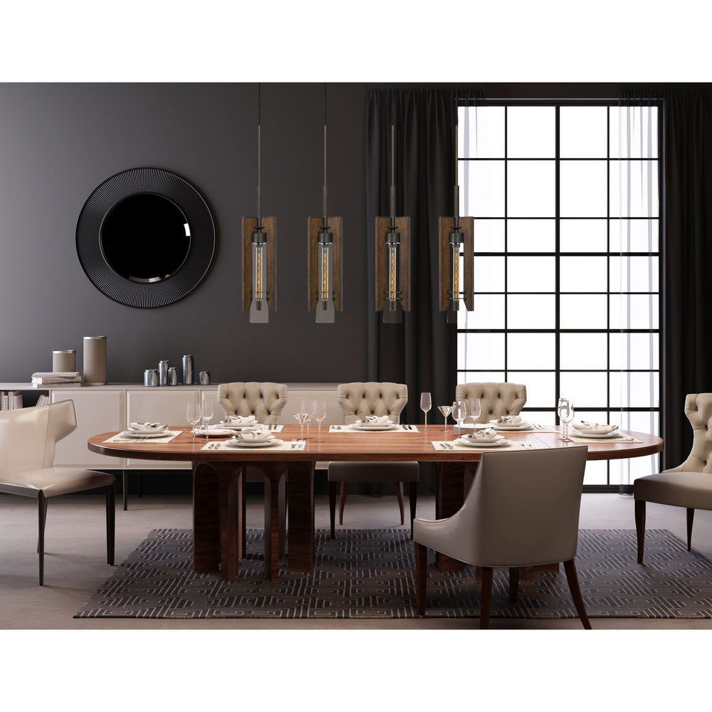 60W X 3 Almeria Wood/Glass 4 Light Pendant Fixture (Edison Bulbs Not included)