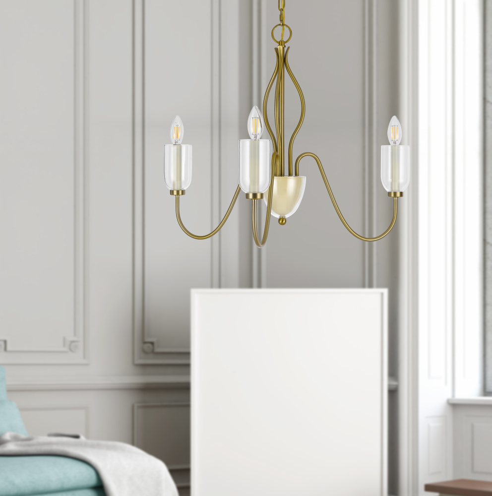 60W x 3 Kalamaria metal chandelier with glass shade