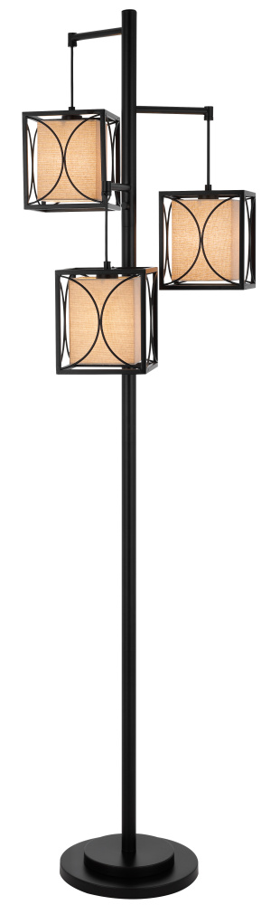 60W x 3 Lantern metal floor lamp with metal framed fabric shades