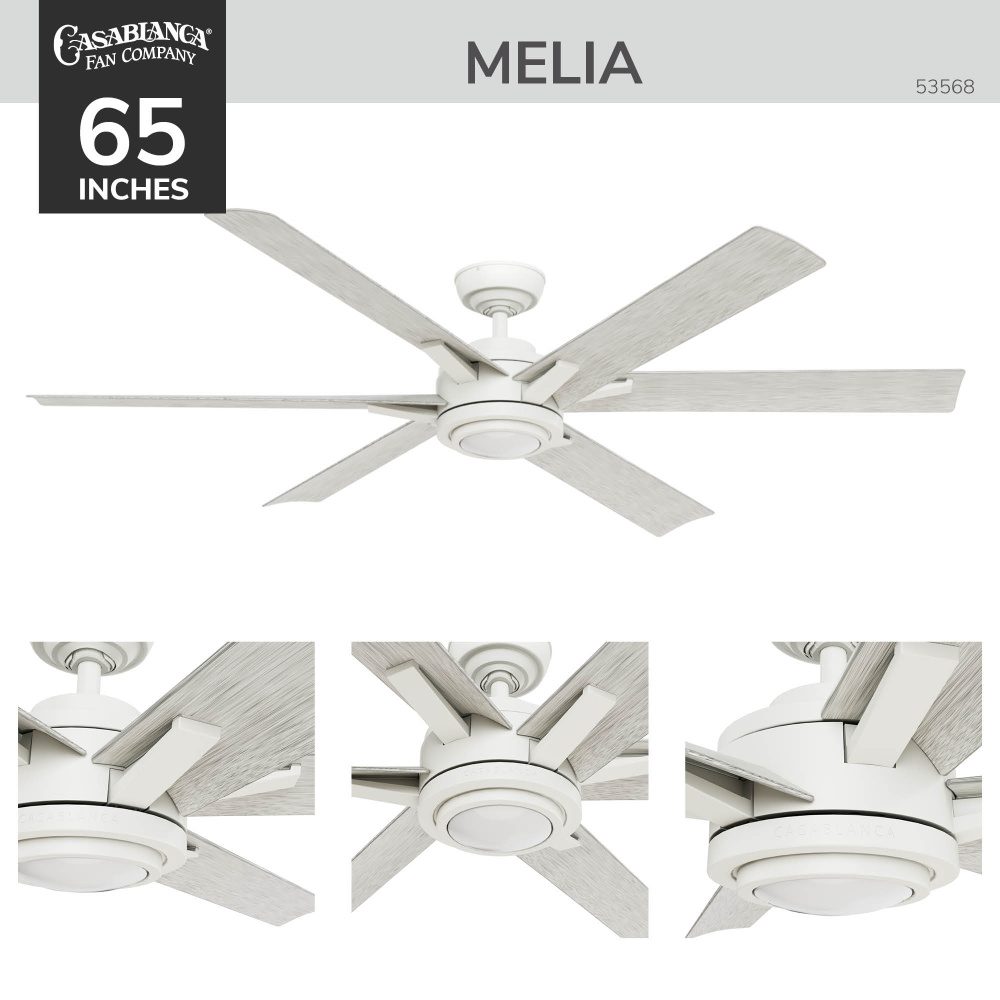 Casablanca 65 inch Melia ENERGY STAR® Fresh White Damp Rated Ceiling Fan with LED Light Kit