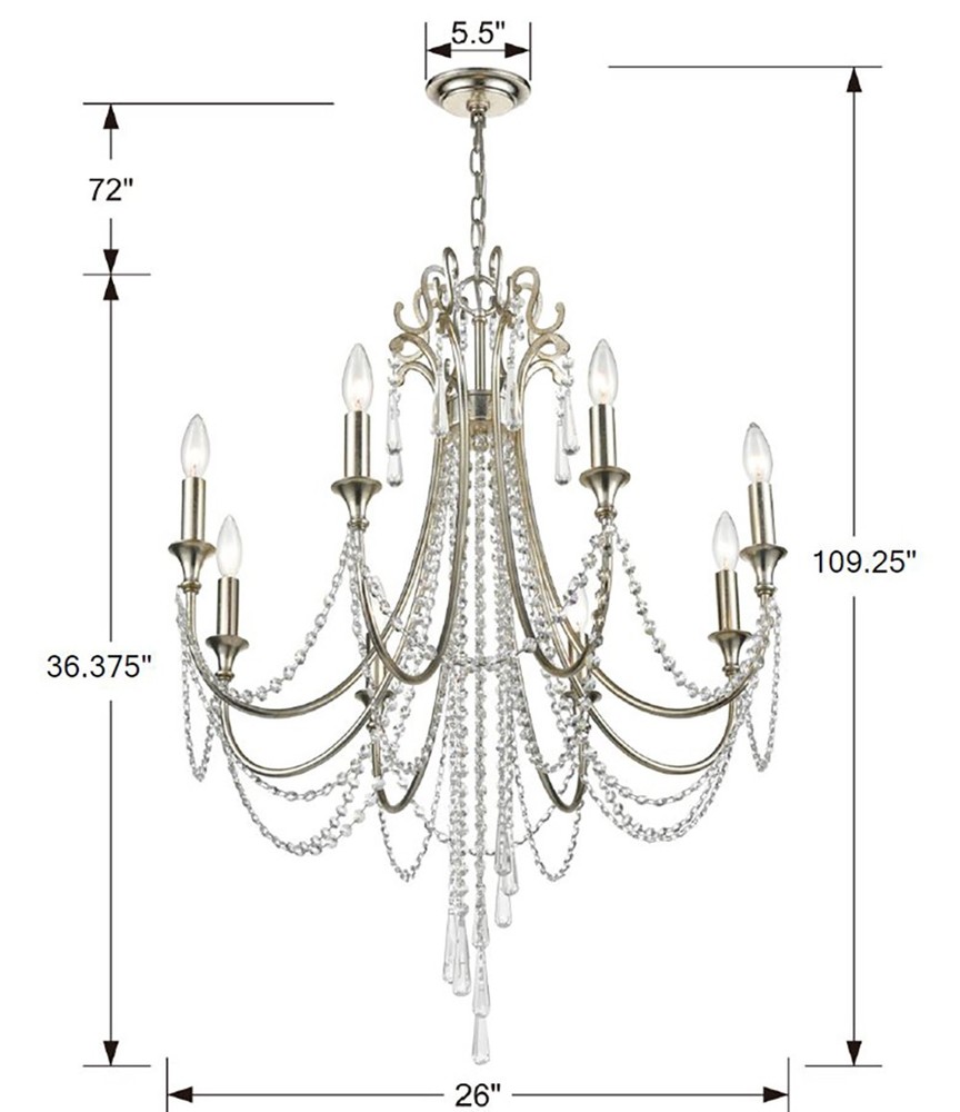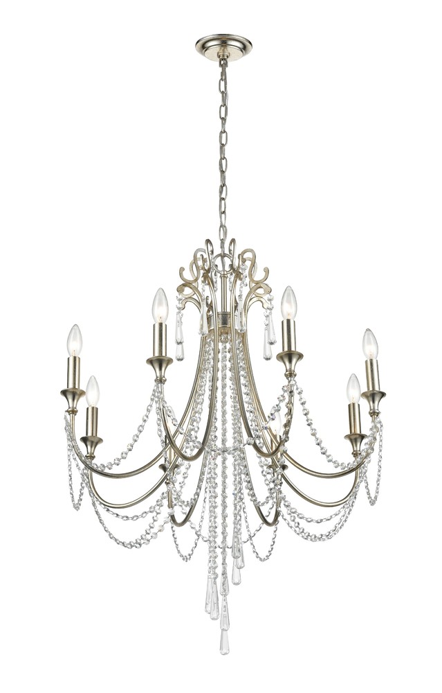 The Arcadia collection features a simple, transitional metal framework that is elegantly dressed with a beautiful crystal draping.