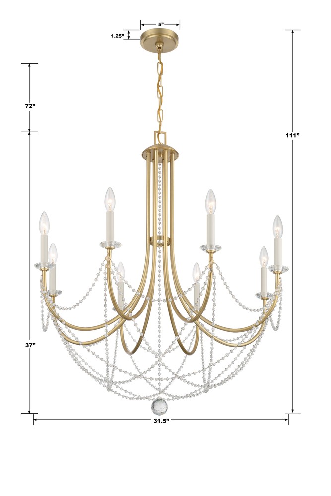 The Delilah chandelier makes a grand statement to your interior. Its swooping metal frame gracefully hangs crisscrossed cascading crystal beads from each metal arm. This modern-style crystal chandelier adds a rich and formal look to a room, making it the ultimate final touch.