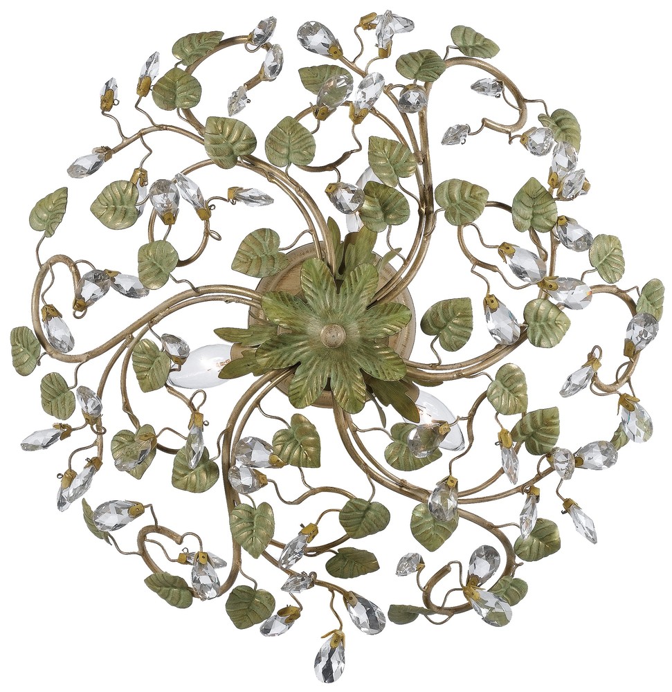 The color-driven Josie is feminine in feel with an organic rhythm. The natural floral elements are a hand-painted green tea and champagne color which adds a refreshing burst of colors to your decor. With its sparkling faceted cut crystal jewels, this light is great to add a bit of whimsical glamour to any setting.