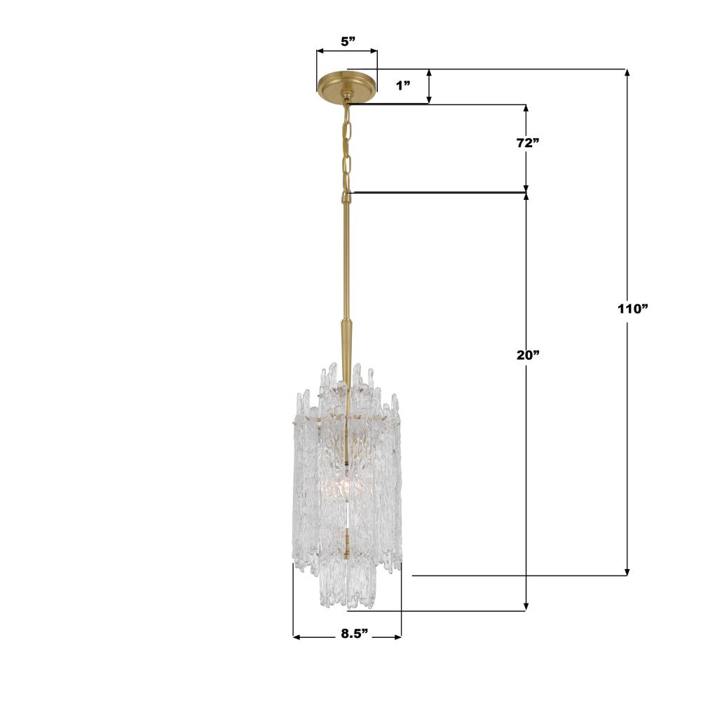 The Ackerly Collection showcases stunning ice glass, a textured material that resembles frozen or cracked ice. Its frosted, crystalline surface uniquely scatters light, producing a soft, diffused glow. This organic, sculptural effect adds a modern yet slightly retro touch to the design. The Ackerly Collection combines elegance with an artistic, edgy aesthetic, making it a standout in any space.