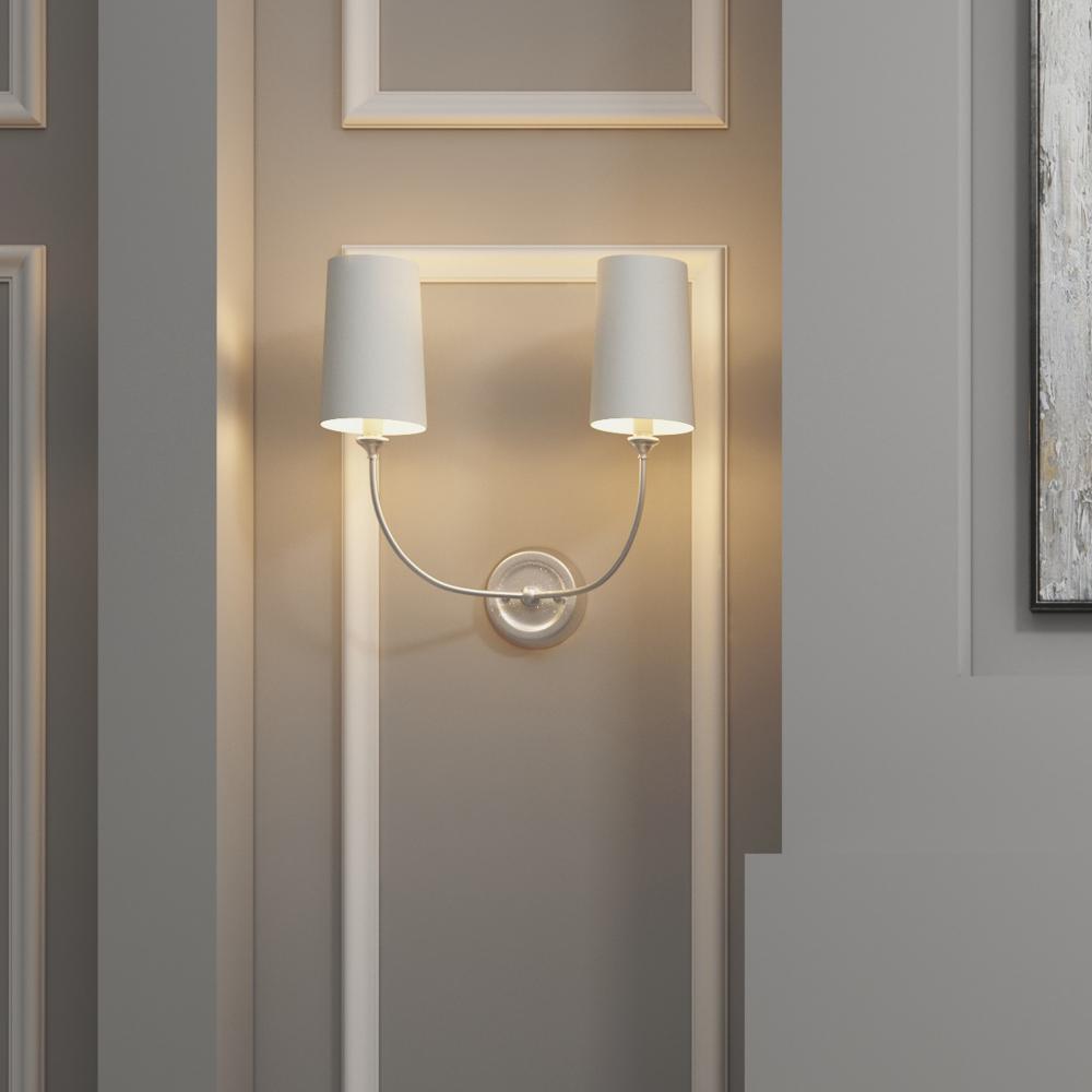 The Libby Langdon designed Sylvan wall mount offers a simple yet sophisticated design to brighten up any space. The circular backplate has gracefully upward sweeping arms, complemented by a tapered silk shade. The Sylvan adds a touch of tailored elegance and modern styling to any interior.