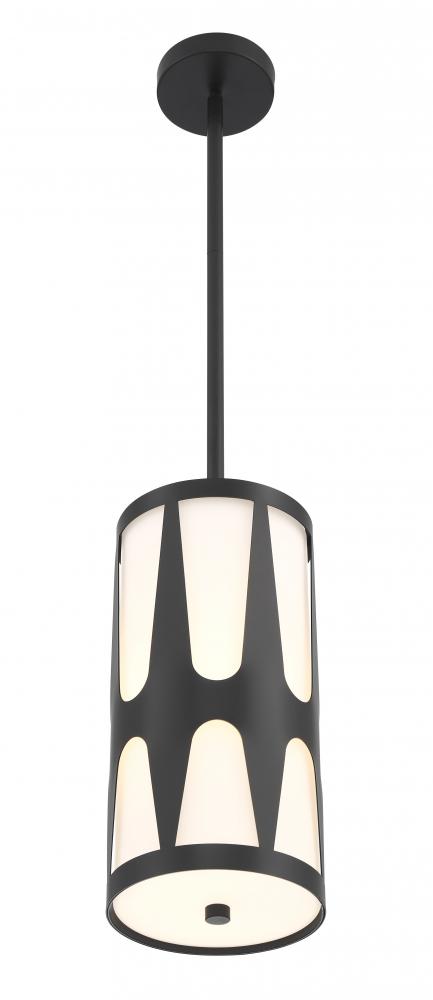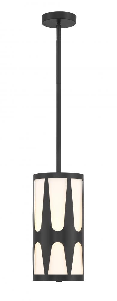 Elevate your space with the strikingly stylish Royston one-light pendant. This fixture showcases an artsy metal pattern overlay, creating an intriguing and eye-catching profile. The inner white glass shade adds a touch of texture, while the glass diffuser helps cast a soft and inviting illumination to its surroundings. Make a statement with the Royston pendant over a kitchen island and transform your space into a stunning showcase of sophistication.