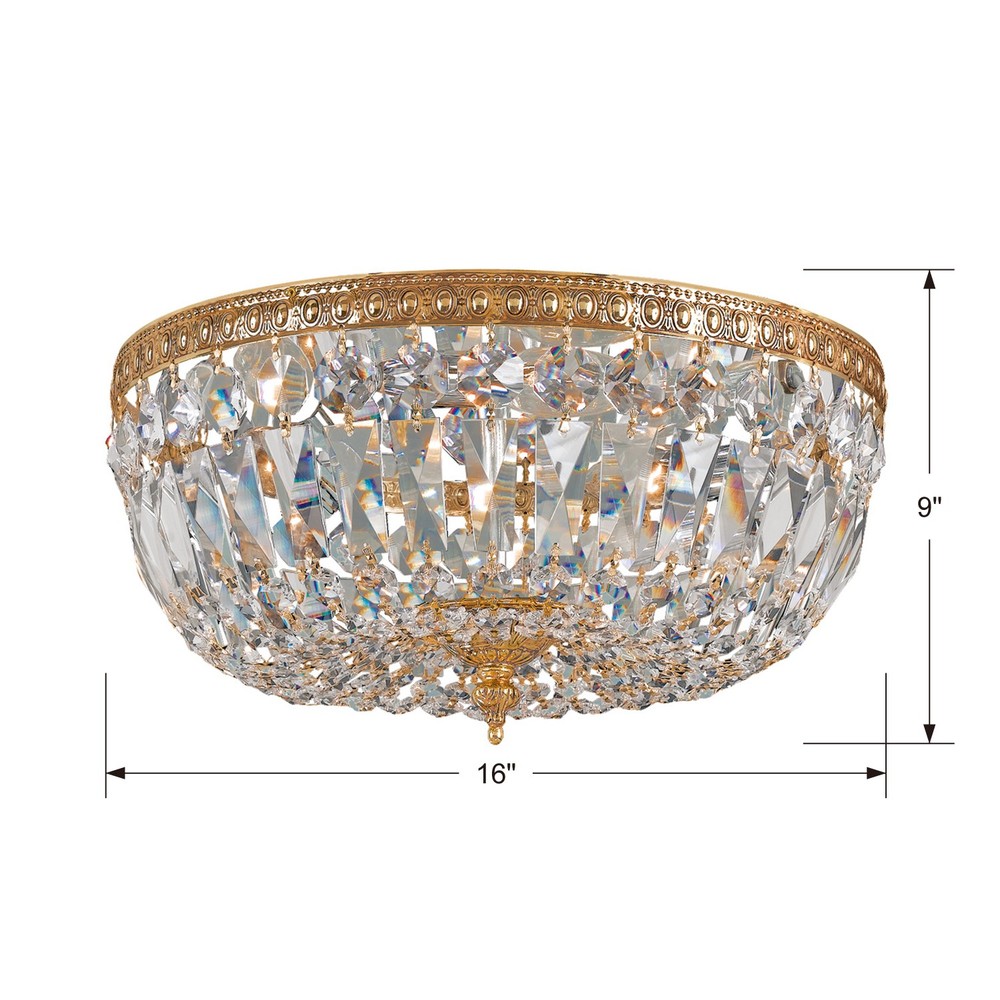 Waltham 16'' Clear Hand Cut Olde Brass Flush Mount