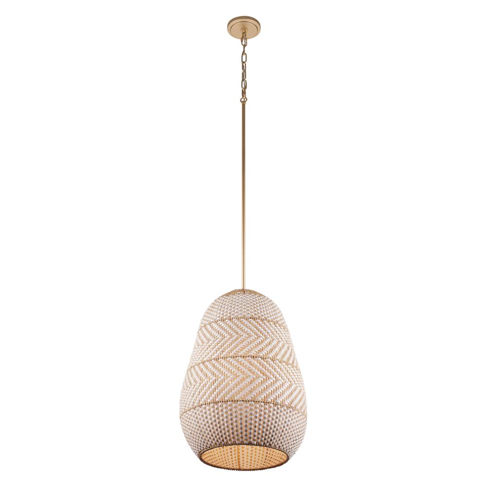 The Zanzibar Collection is an embodiment of laid-back luxe and thoughtful simplicity. By marrying the natural textures of natural rattan with white and/or black lanyard, the fixture introduces a striking color palette with a soft gold finish that instantly brings comfort and style to a living space Handcrafted with precision, the intricate weave introduces texture and depth to your décor. Whether suspended over a breakfast nook or in pairs above a kitchen island, the Zanzibar exudes an earthy, elegant charm that brings an artisanal touch to your decor.