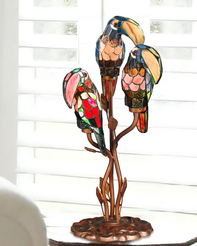 Three Parrots Tiffany Table Lamp