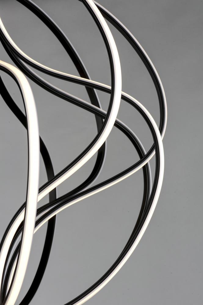 A sculpture of durable steel and aluminum channel is gracefully formed with offsetting waves of motion. This collection is fully dimmable for a great combination of form and function.