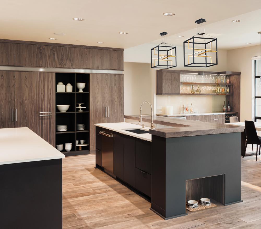 Blocks of Black encase a series of contrasting U shape Gold structures that house the LED. Positioned in various directions, the entire room is illuminated by this unique architectural design.
