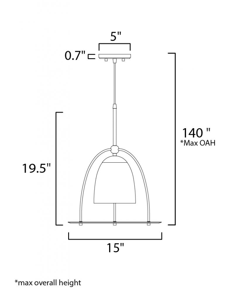 Satin White dome shaped glass suspend from yokes of Black, conceal a LED light source which projects light onto a horizontal round glass diffuser. The diffuser is etched with a clear reveal to better diffuse the light below.