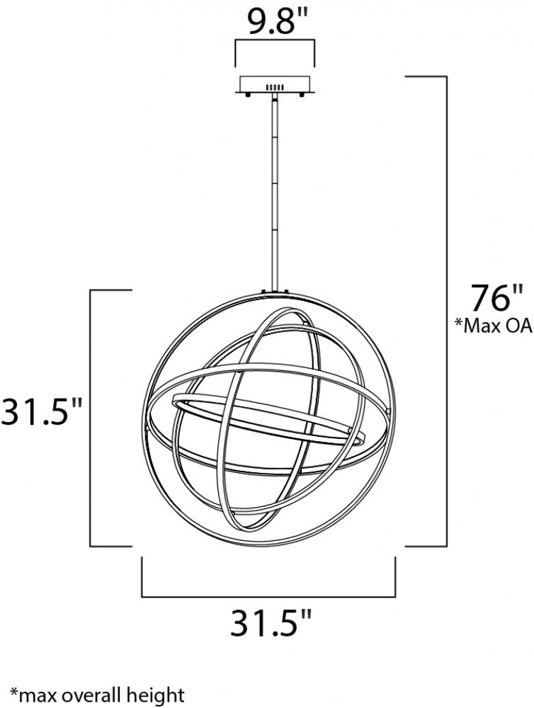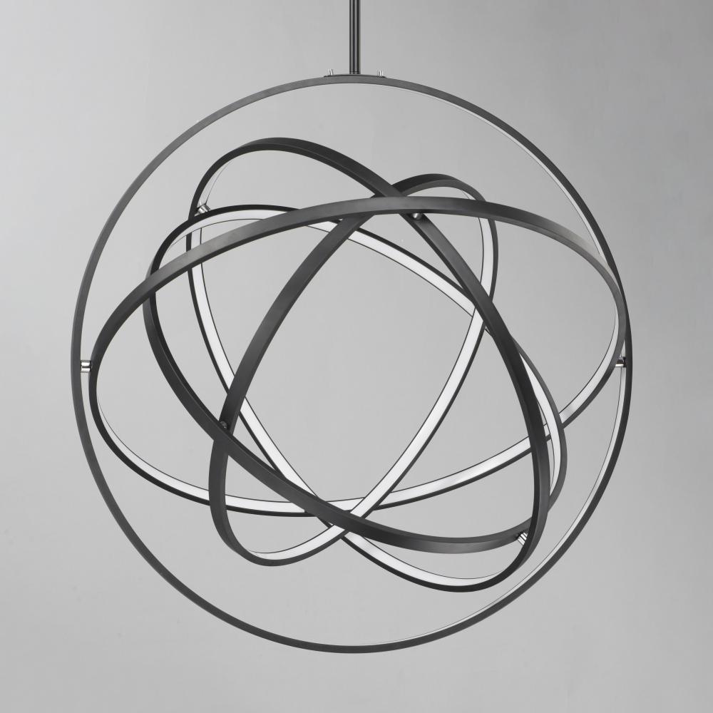 A very unique and interesting design that features concentric bands of Polished Chrome or Black that rotate on 3 axis points and adjusts in multiple directions similar to a gyro. The edge of each slender band encases a small LED strip covered by a frosted