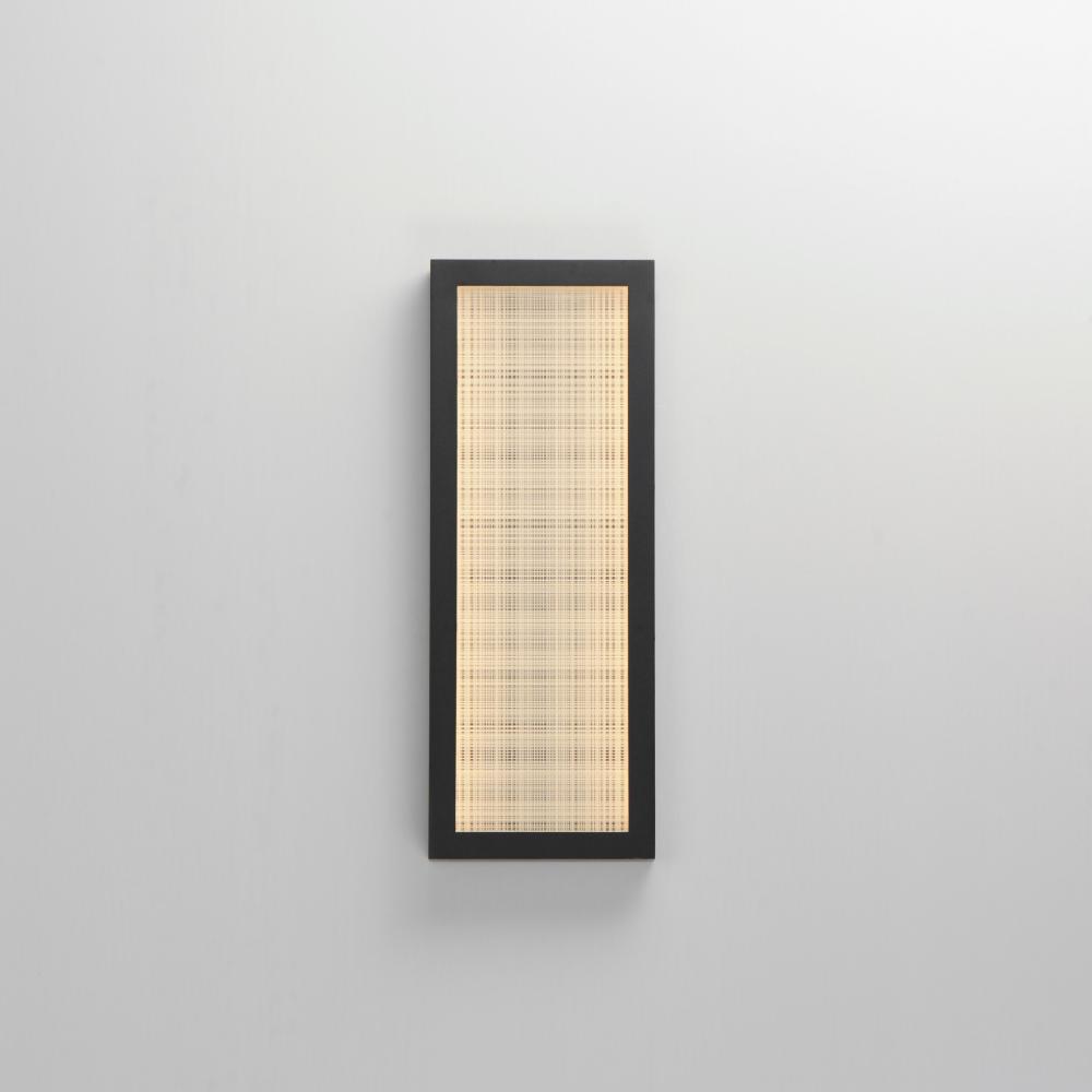 An internally illuminated shadow box is encased in glass with a tartan plaid pattern engraved to mimic linen. The back plate features a polished stainless steel plate adding an almost infinite dimension to the pattern. Constructed of aluminum in Matte Blac