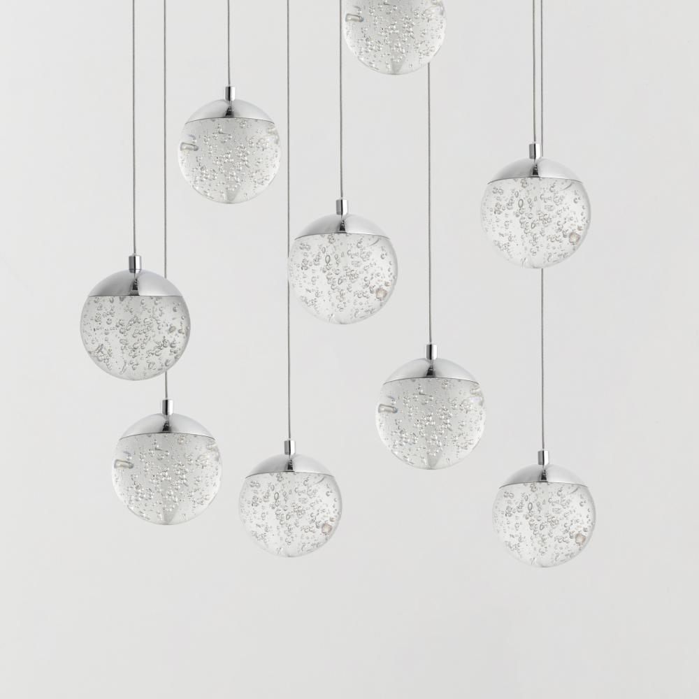 We took this popular collection and made it better. We took the xenon bulb out of the middle and enclosed a LED module in the cast Polished Chrome cap that supports the clear bubble glass balls. The glass screws into the cap so there are no visible screws