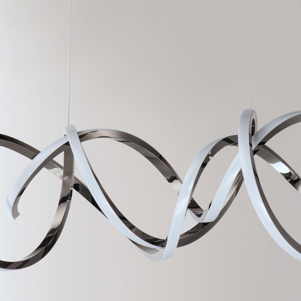 Organic lines sweep across horizontally and terminate as if a signature was written in 3 dimensions. Finished in a rich Brushed Champagne, this collection is as much a sculpture as it is a functional light source.