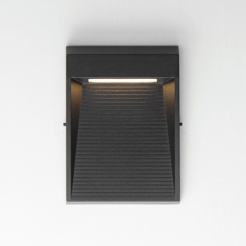 A slim profile extends from the wall with sharply angled facets. Available in various sizes and your choice of Matte Black or Antique Bronze finish, its scale allows it to function both as a step light and as a subtle LED outdoor wall sconce. Concealed wit