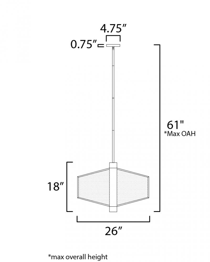 Translucent acrylic panels dotted to guide indirect LED strips integrated into the body of the fixture. The angular forms of the pendants create a strikingly modern display of light that is both airy and voluminous. An additional LED GU10 bulb is recessed