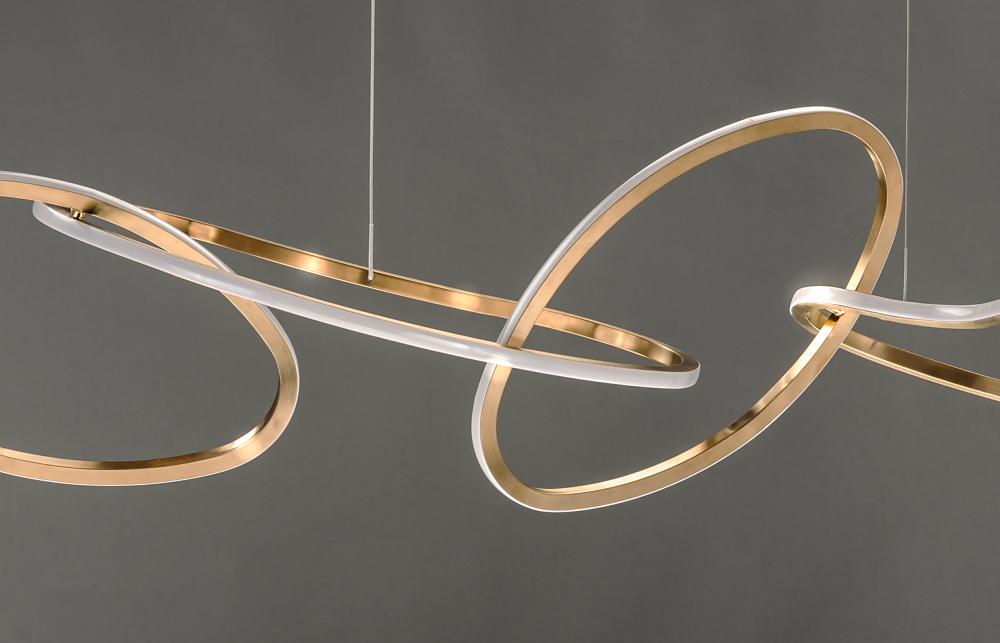 Abstract shapes of stainless steel are finished in Brushed Champagne or Black Chrome and intersect to create an intriguing sculpture of light. Unity provides both art and illumination for those searching for a unique lighting piece.