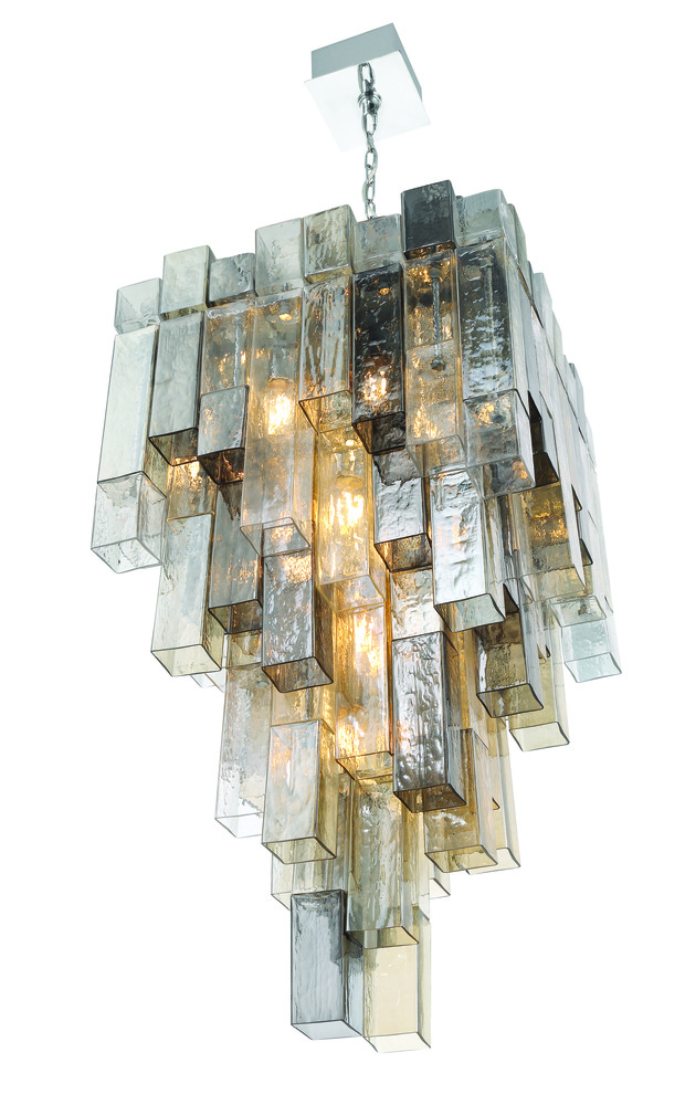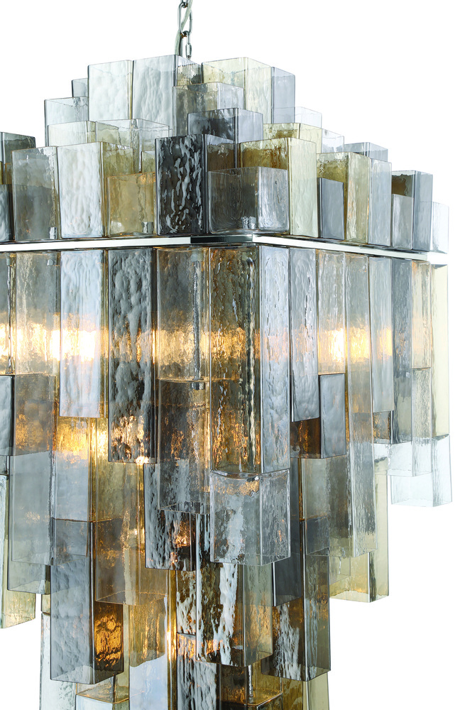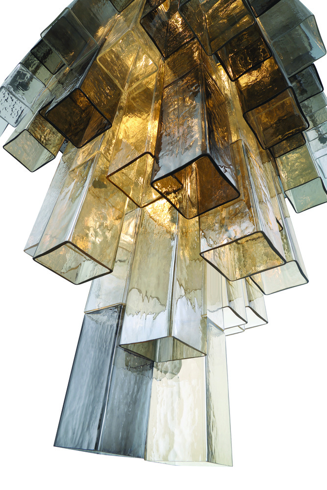 A series of stepped square balusters are the backbone of a staircase; adding grace and strength to a functional element in a building. Using this same tiered visual, Altesa dresses square frames with elongated square tubes of glass. The varying lengths, tones and densities of glass influence the depth and color of light, presenting a mesmerizing display in grand proportions.