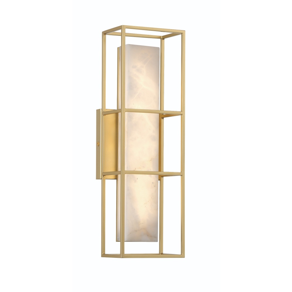 Organic and industrial have been combined. The softness of one piece, hand carved alabaster surrounded by a metal frame to represent the yin and yang in exterior design. Natural alabaster may show variations in color and texture.