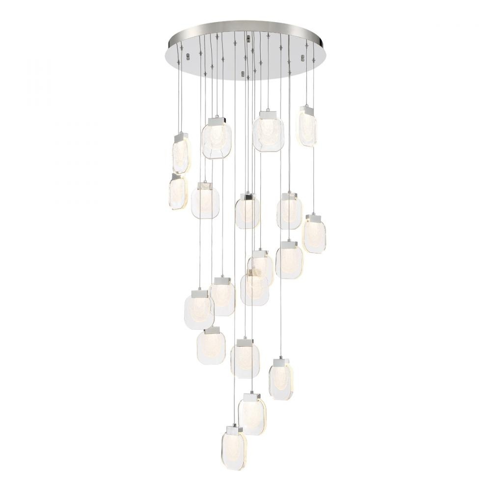 Multiple layers of monochrome sugar glass ripples are encased in clear glass plates that are all handmade, creating one-of-a-kind works of art with no two pieces exactly the same. Each piece cascades in a mesmerizing, rhythmic pattern. A soft white glow from the recessed LED lights emanates from each piastra glass, which is hand-formed, pressed glass made from techniques that date to the13th century.