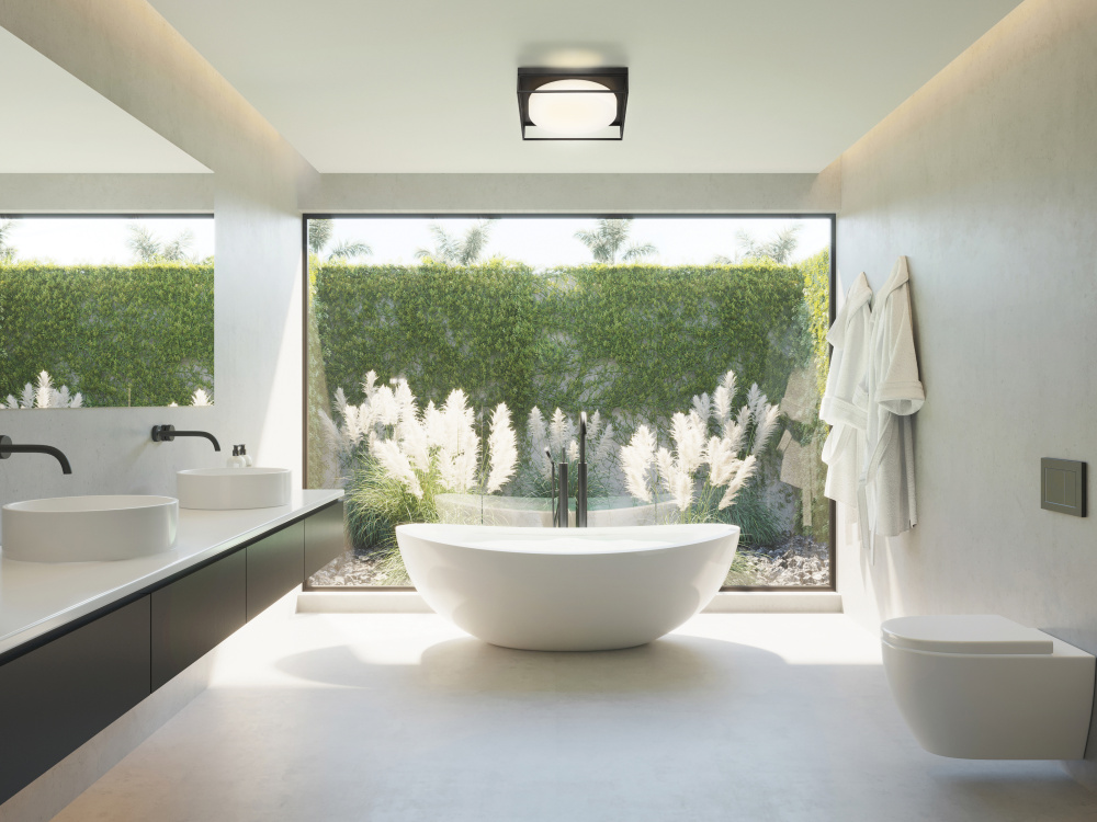 Chic minimalism exuberates from the Rover collection. Simple squared framework houses opal glass disks for a clean design. The open frame adds a stylish element that effortlessly supports each light.