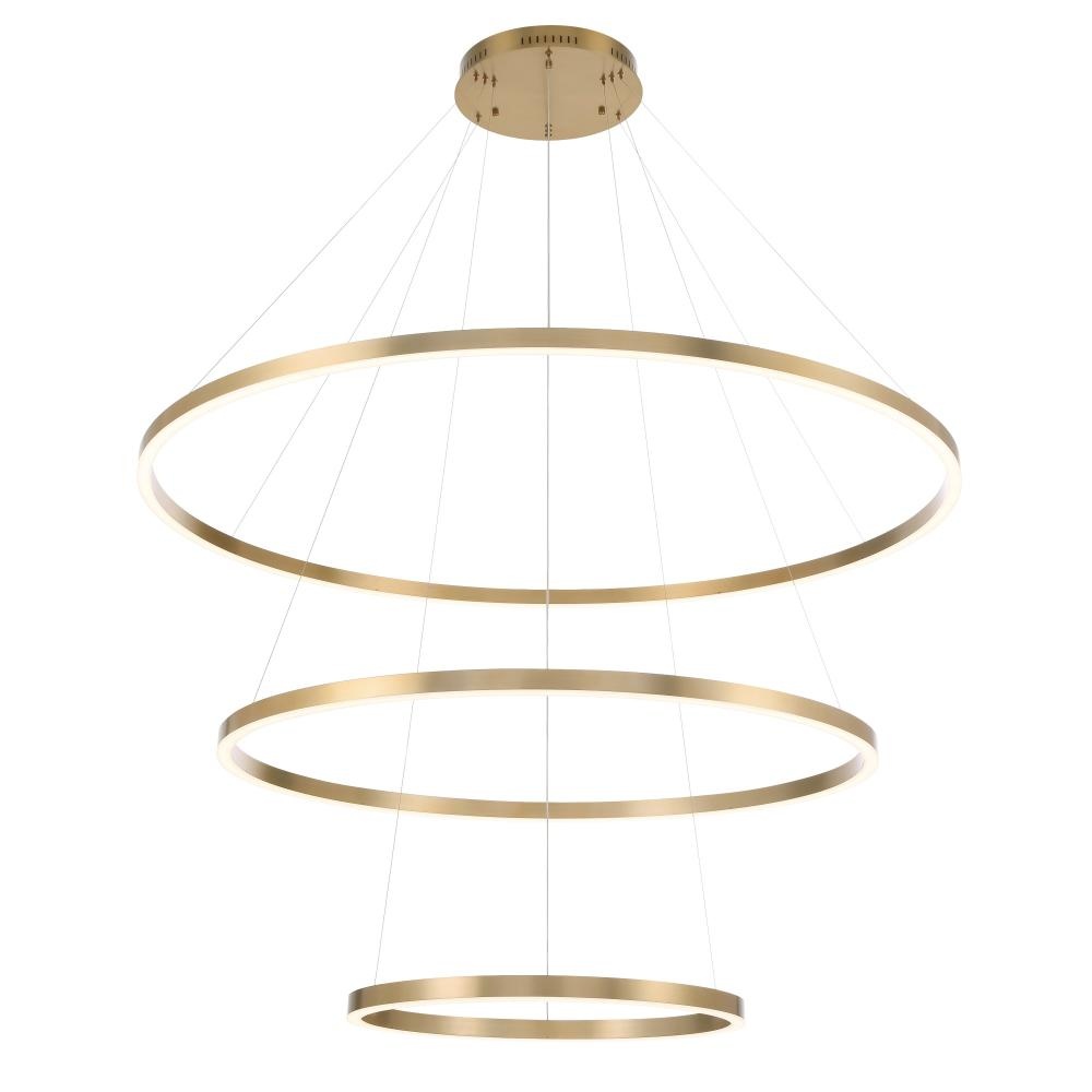Oversized machined aluminum rings bring these simple chandeliers to life. The grand stature demands attention and illuminates large spaces with opal diffused LED lighting.