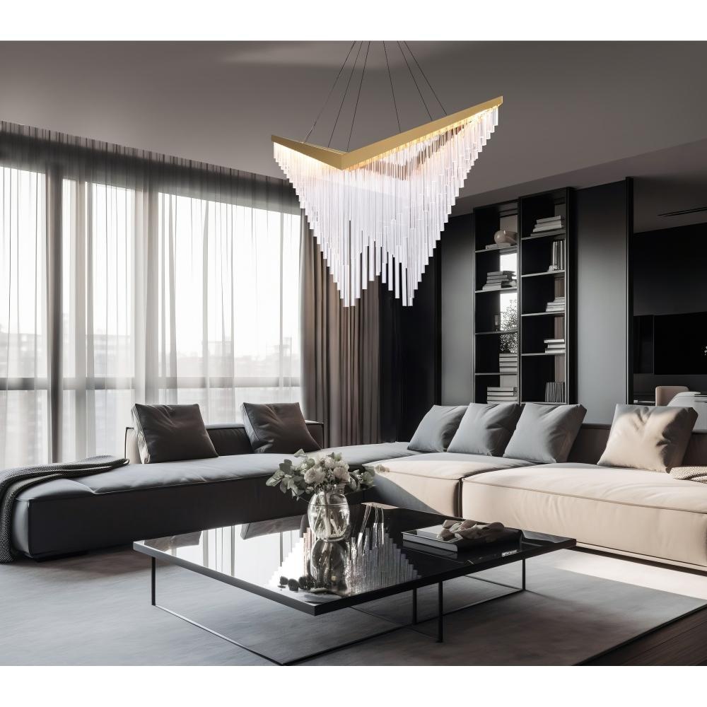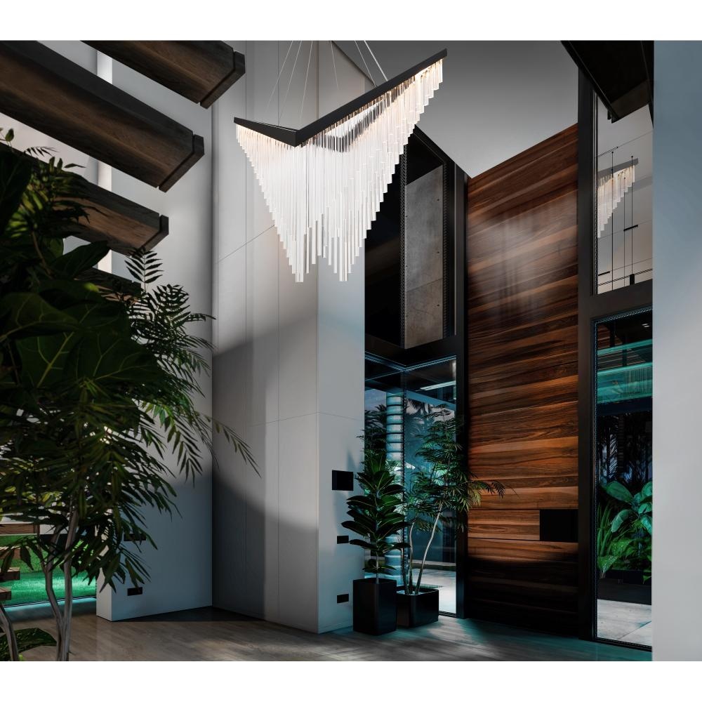 The chevron shape first found note in the heraldic services to the monarchy as proclaimer of news and information. Vivian uses a series of these “V” shapes to present stunning statements of lighting mastery that will instill a space with monarchical glory and timeless elegance.
