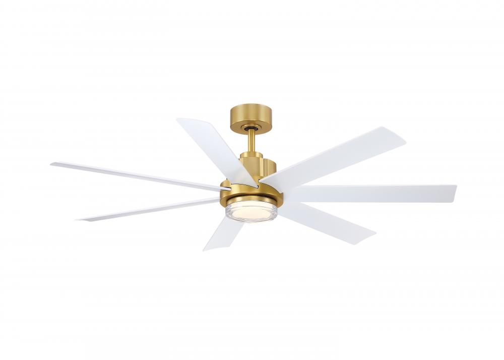 Pendry 56 inch Indoor/Outdoor Ceiling Fan with Matte White Blades - Brushed Satin Brass
