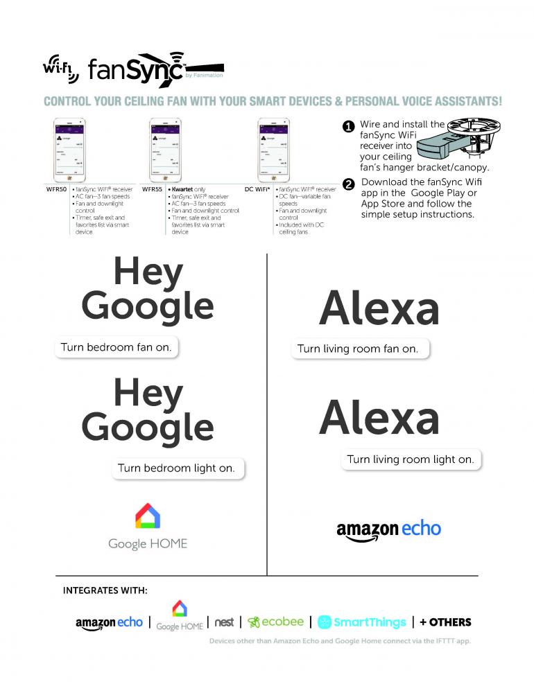 TECHNOLOGY: Includes fanSync Wi-Fi connectivity, allowing the fan to pair with most smart home devices