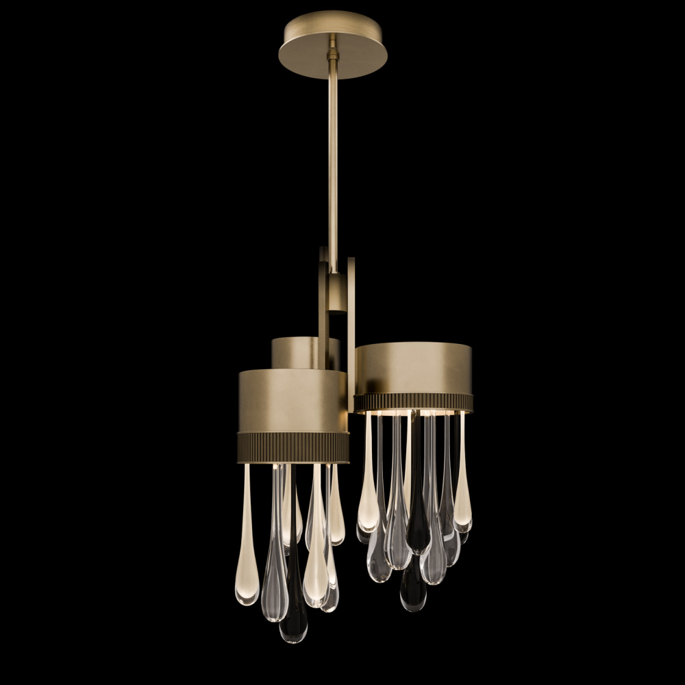 This LED pendant captures the beauty of motion suspended in time-artisan-blown glass “rain” drops infused with swirling mist and illuminated from within. Offered in Silver, Gold, or Copper drops, each paired with clear and black droplets and complemented by a hand-applied ombré finish that enhances its luminous depth.